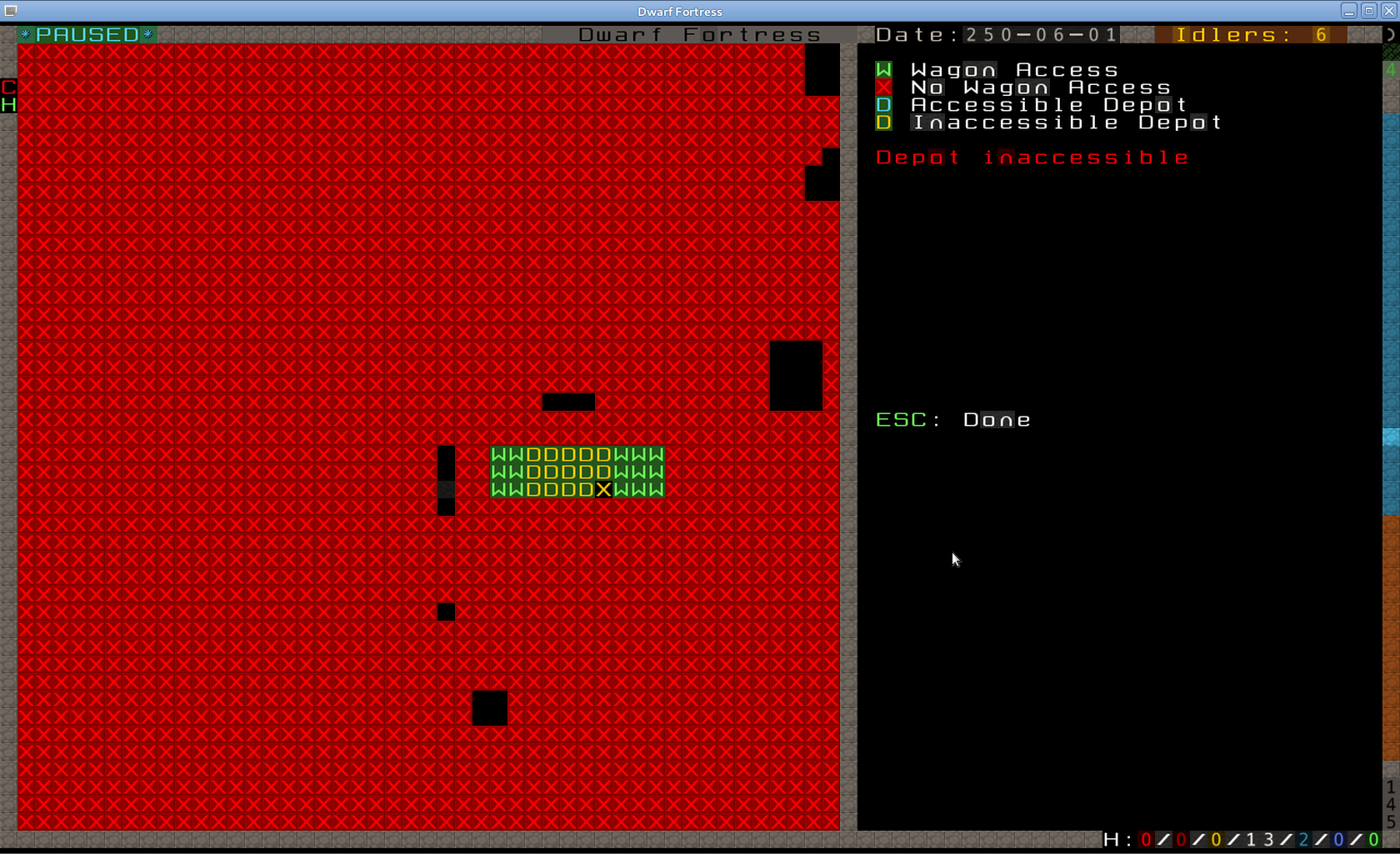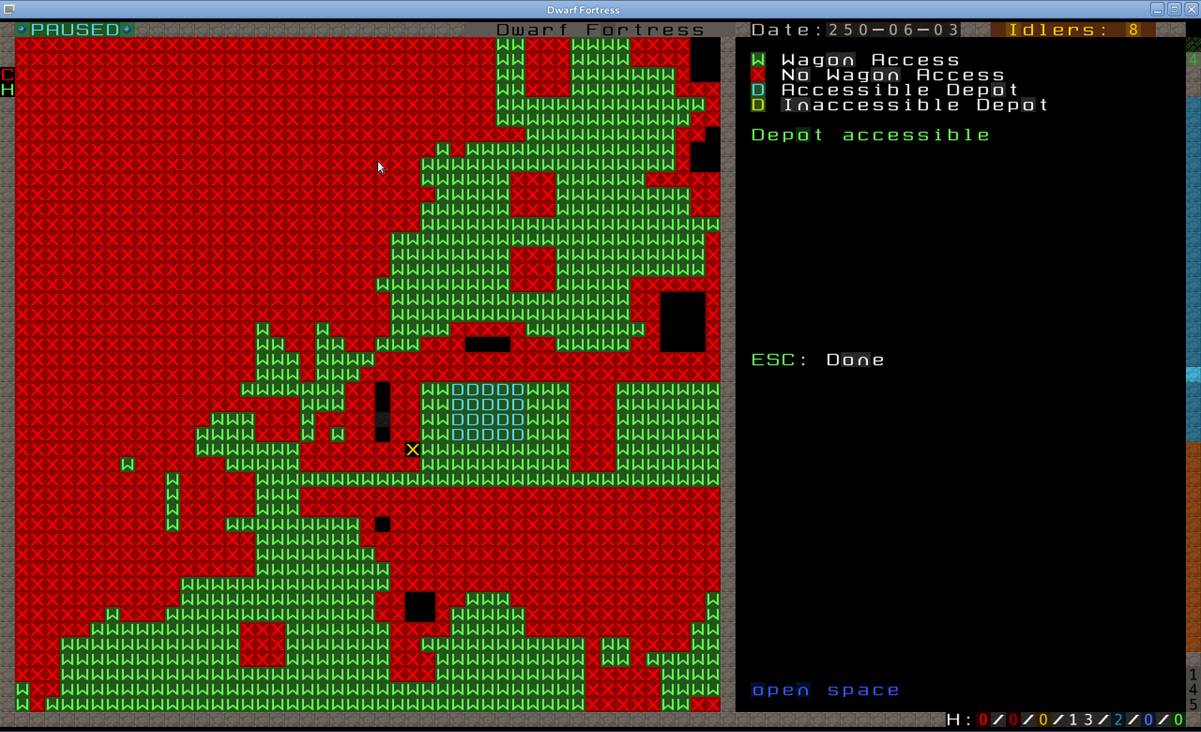 Maintenant que notre marché est construit on va pouvoir vérifier s'il est accessible aux caravanes. Dans le menu principale tu tapes D (depot access) (attention un D majuscule).