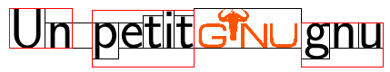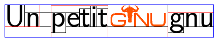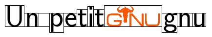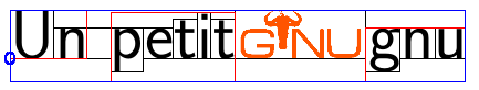 Et enfin des boites de phrases contenant des boites de mots. Le logo gnu est aussi mis en boite.