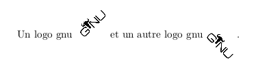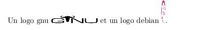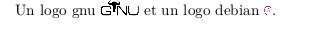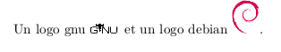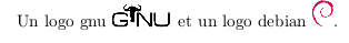 Nos logos sont un peu grands. Sans précision \includegraphics affiche le dessin dans sa taille réelle soit, par exemple, pour le logo gnu 125x50 pixels.