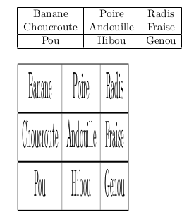\scalebox fonctionne comme l’option \scale de \includegraphics, elle agit sur l’échelle d’un objet :